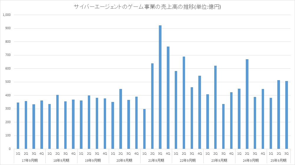 サイバーエージェント<4751>は、この日(8月8日)、第3四半期(25年4~6月)のゲーム事業について、営業利益が前年同期比220.7%増の164億5400万円と大幅に伸びたことを明らかにした。売上高も同30.3%増の506億5100万円と大きく伸びた。この日発表した第3四半期決算と25年9月通期業績の上方修正の大きな要因でもあった。