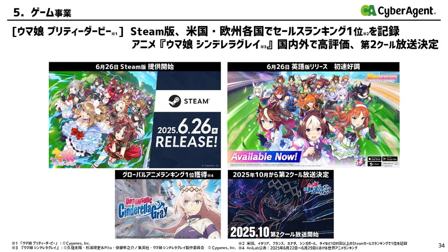 サイバーエージェント、第3四半期ゲーム事業は営業3.2倍と大幅増 『Gジェネ』と『シャドバWB』貢献 英語版『ウマ娘』大ヒットで第4四半期も「かなり強含み」