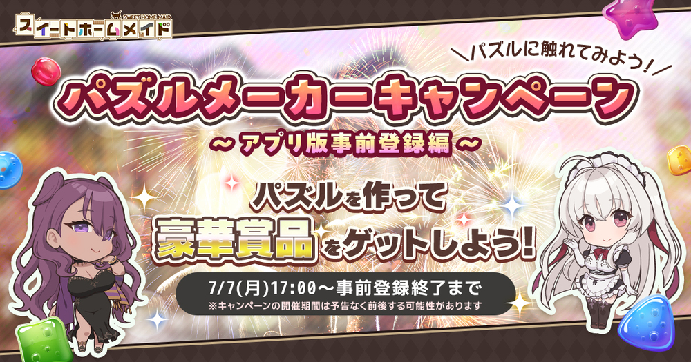 アプリ版『スイートホームメイド』の事前登録開始を記念して、パズルメーカーキャンペーンが開催中。