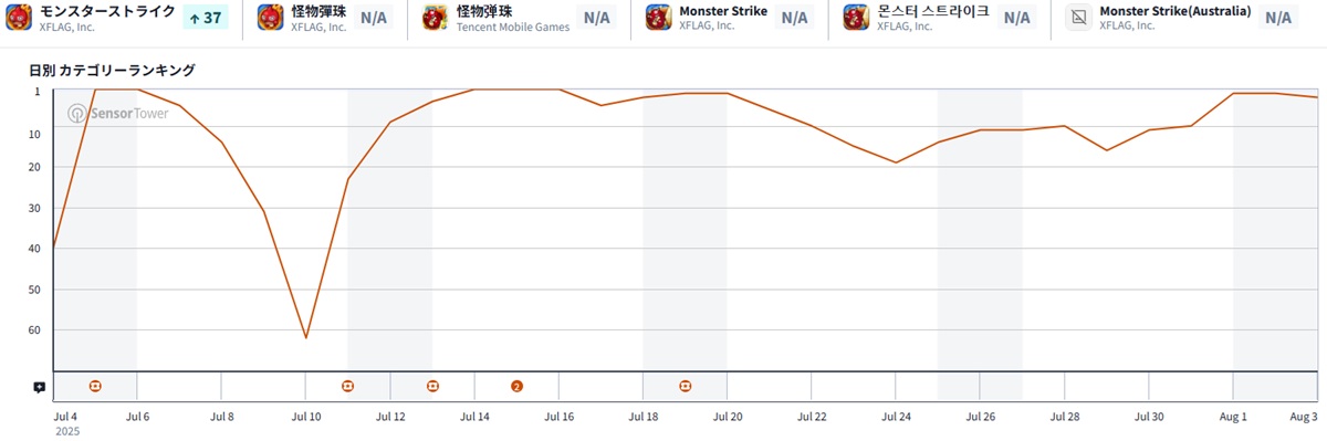 『Pokémon TCG Pocket』、『ラストウォー:サバイバル』、『ホワイトアウト・サバイバル』、『ドラゴンボールZ ドッカンバトル』、『モンスターストライク』といった既存の人気タイトルは、上位を維持する傾向が見られた。