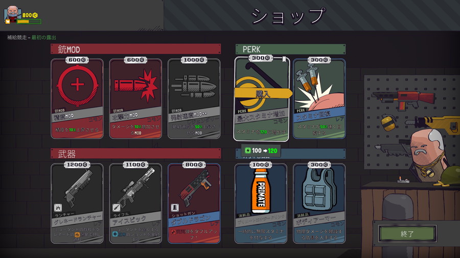 荒野には65種類のPERK(特殊能力)が詰まったアップクレートが点在し、19種類の武器の持ち換え、武器改造MODによるパワーアップ、世紀末を生きる商人のショップなど、ローグライトゲームの人気要素が完備されている。武器、PERK、改造のシナジーで爆発的に成長し、仲間と協力して戦うことが重要。医療キット、ミニガンタレット、エナジードリンクなどの使い切りアイテムも戦略の鍵となる。