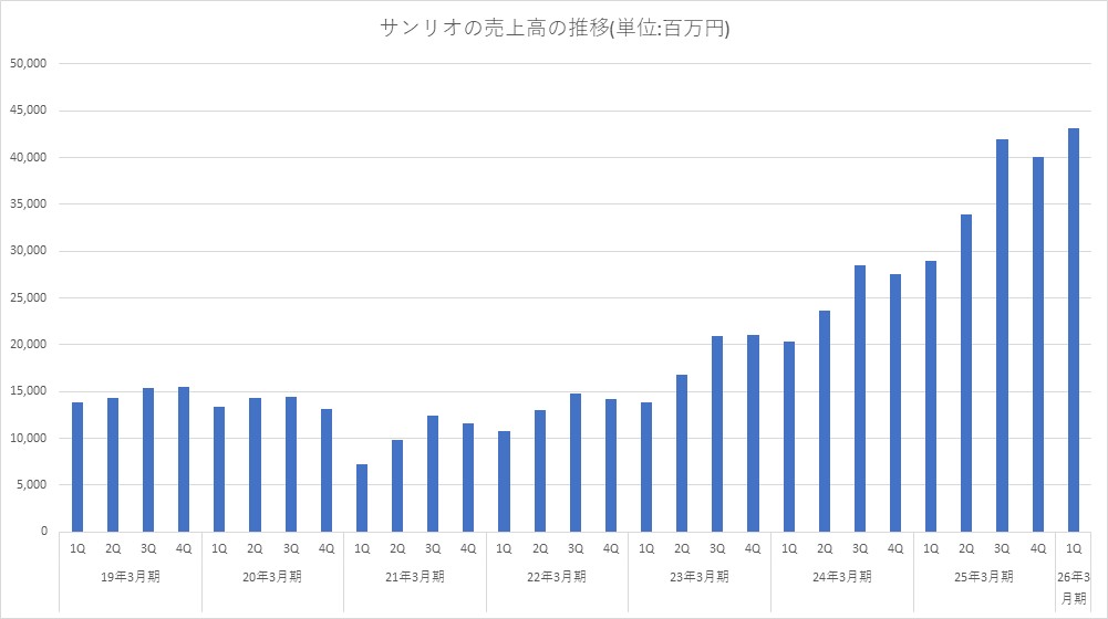 第1四半期累計で、国内の店舗・テーマパークは、グローバルでのサンリオキャラクター人気の高まりや様々な施策が奏功し、外国人観光客および国内客が増加し売上高を押し上げた。