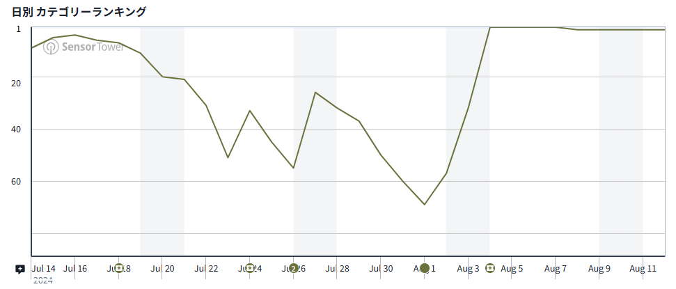 | 18 | 52 | ↑34 | Pokémon Sleep(ポケモンスリープ) | ポケモン |