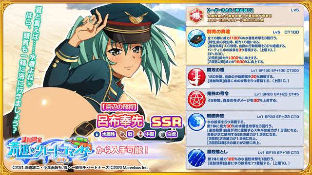本日開始の「荒波のグレートコマンダーガチャVol.1」では、新たに「【浜辺の飛将】呂布奉先」(CV: 渡辺 明乃)が登場! 同ガチャでは、「【浜辺の飛将】呂布奉先」の排出率が、ほかの同レアリティの闘士より高くなっている。
