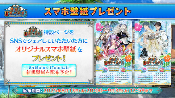 本イベントの特設ページで、スマートフォン向け壁紙のプレゼントが実施中。特設ページを SNS でシェアするとオリジナル壁紙がダウンロードできる。
