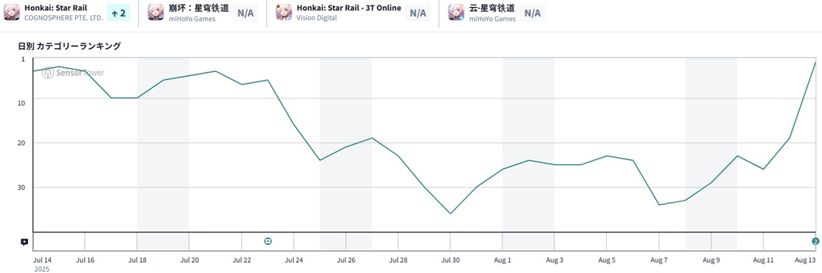 | 2 | 19 | ↑17 | 崩壊:スターレイル | COGNOSPHERE |
