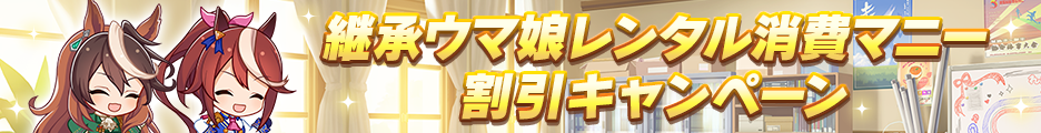 8/15 5:00から「継承ウマ娘レンタル消費マニー割引キャンペーン」を開催!育成開始時に継承ウマ娘のレンタルで消費するマニーが1/2になる。この機会に、フレンドのウマ娘をレンタルして育成を進めてみよう。