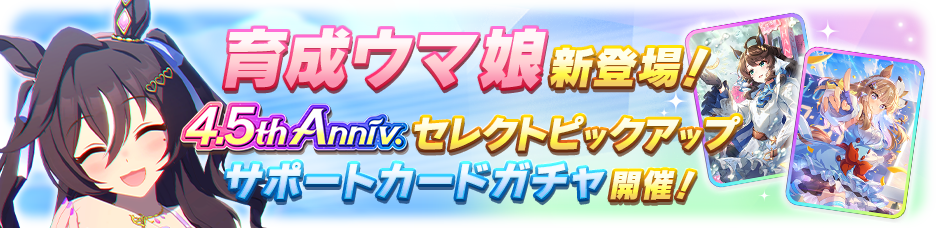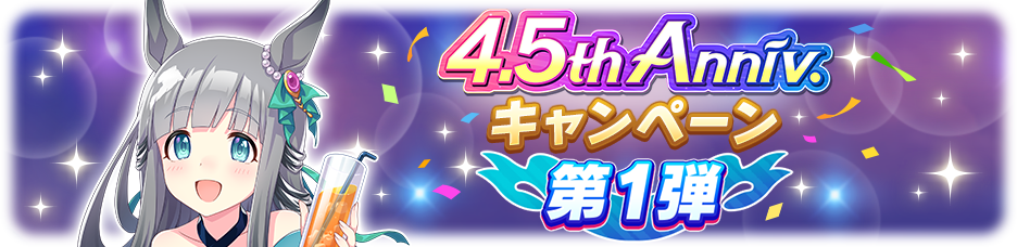 Cygamesは、『ウマ娘 プリティーダービー』について、8月24日に正式サービスの開始から4.5周年を迎えることを記念して、本日12時から「4.5th Anniversaryキャンペーン第1弾」を開催中であると発表した。