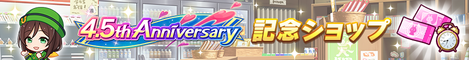 8/14 12:00からホーム画面の[ショップ]に「4.5th Anniversary 記念ショップ」が登場!通常のショップよりもお得にアイテムを交換できる。