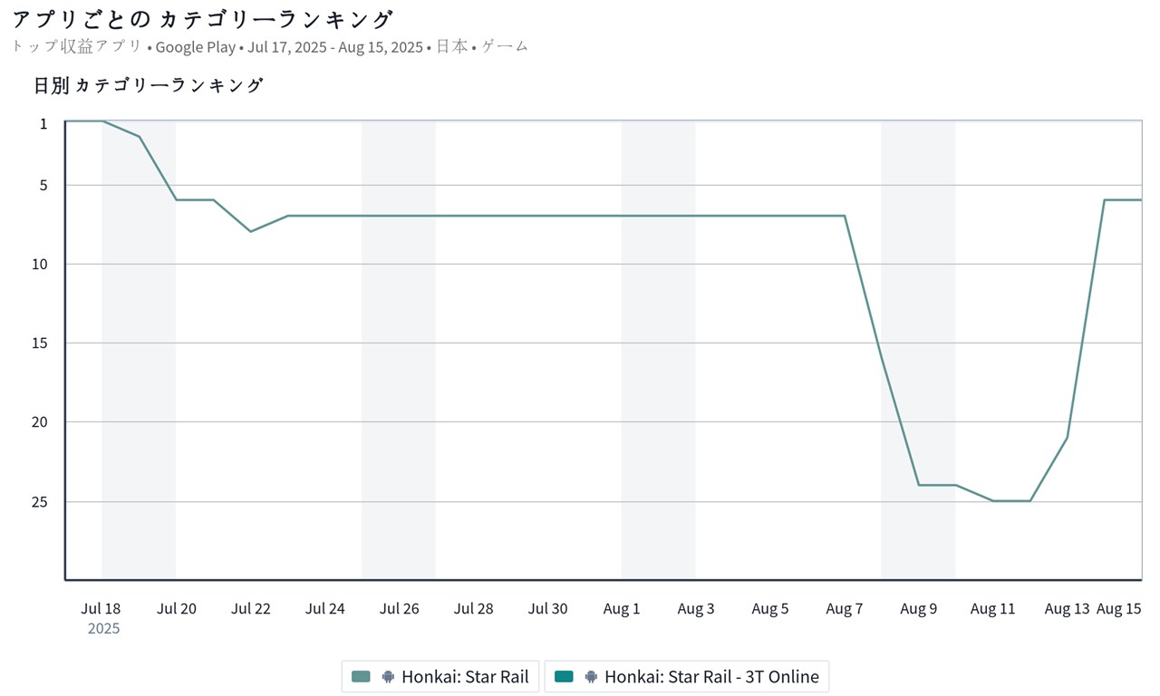 | 6 | ↑15 | 崩壊:スターレイル | COGNOSPHERE |