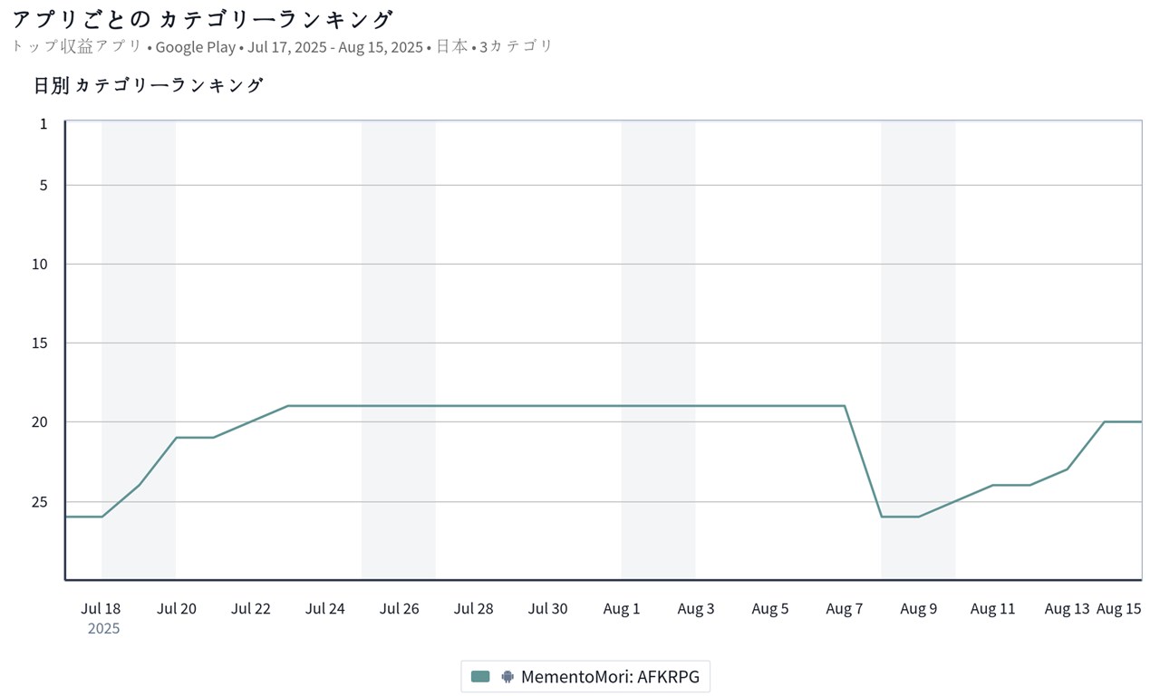 ほか、Yostarの『アークナイツ』がトップ30圏内に復帰した。