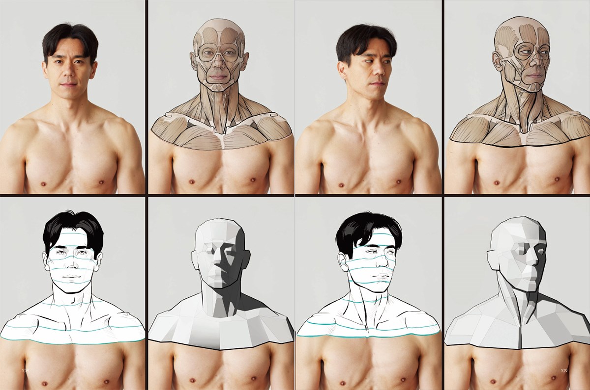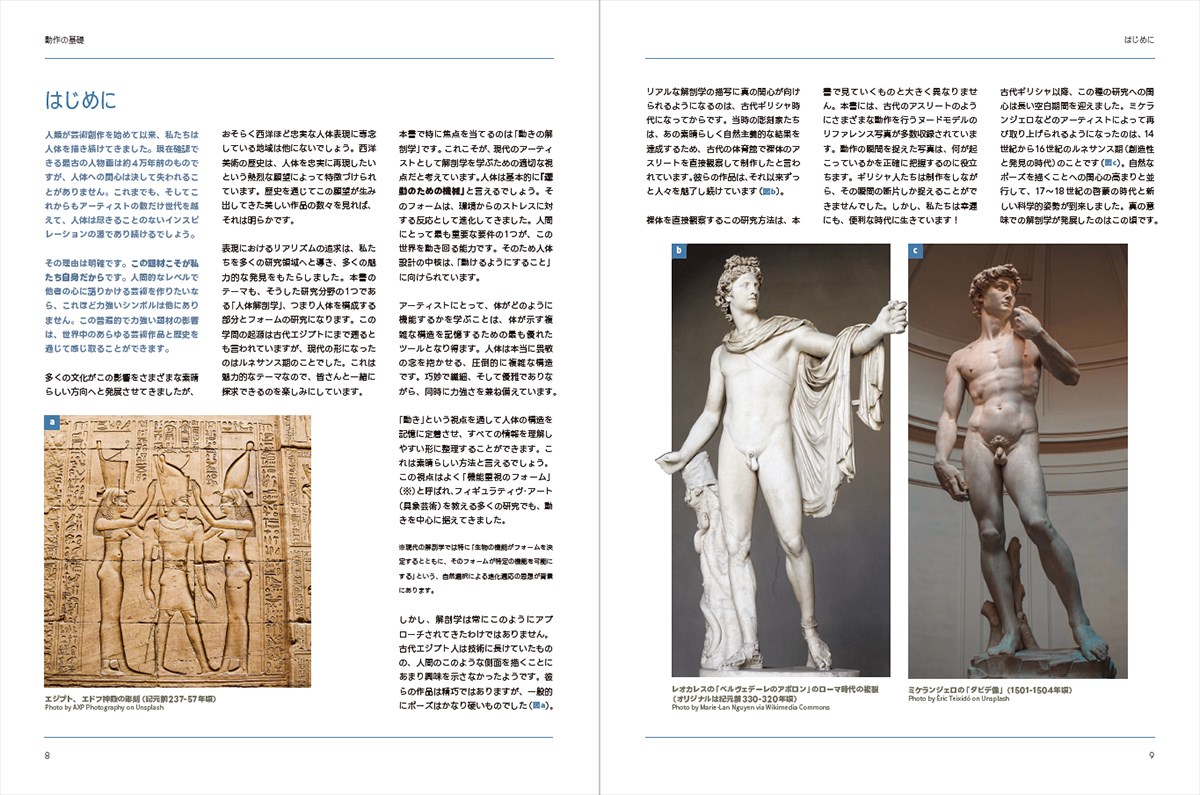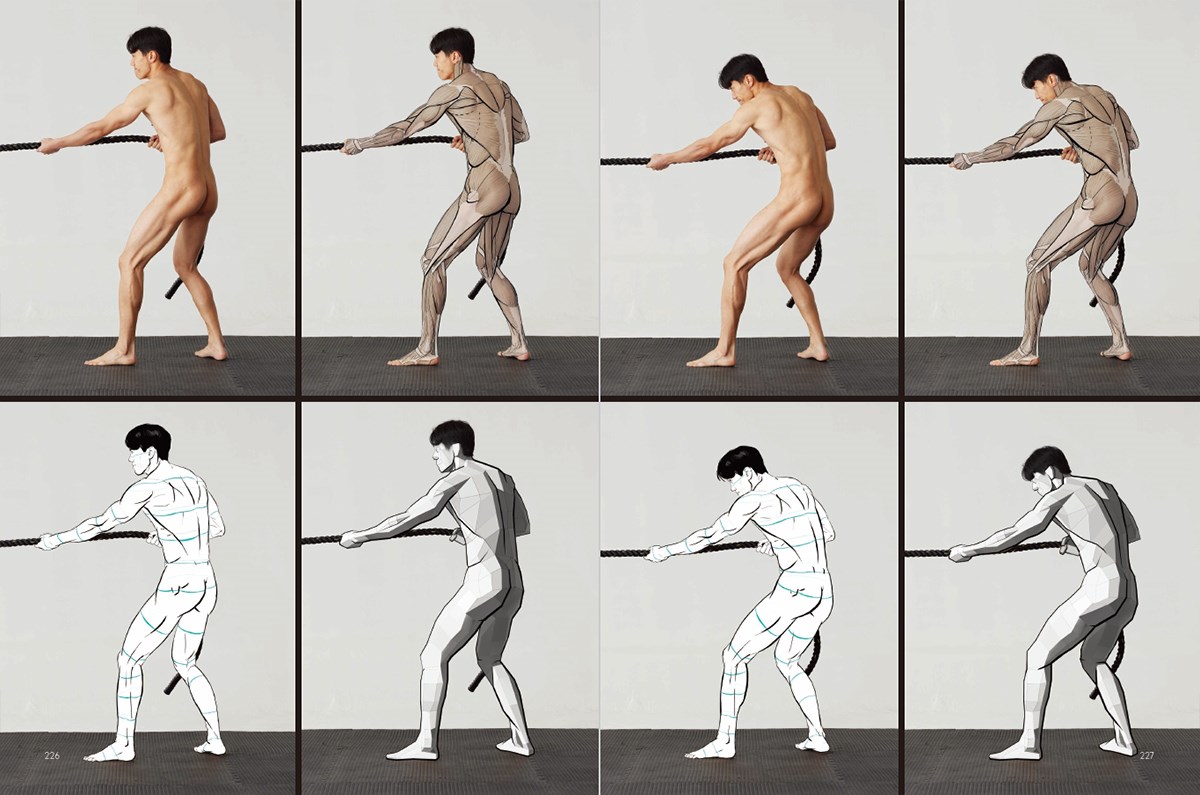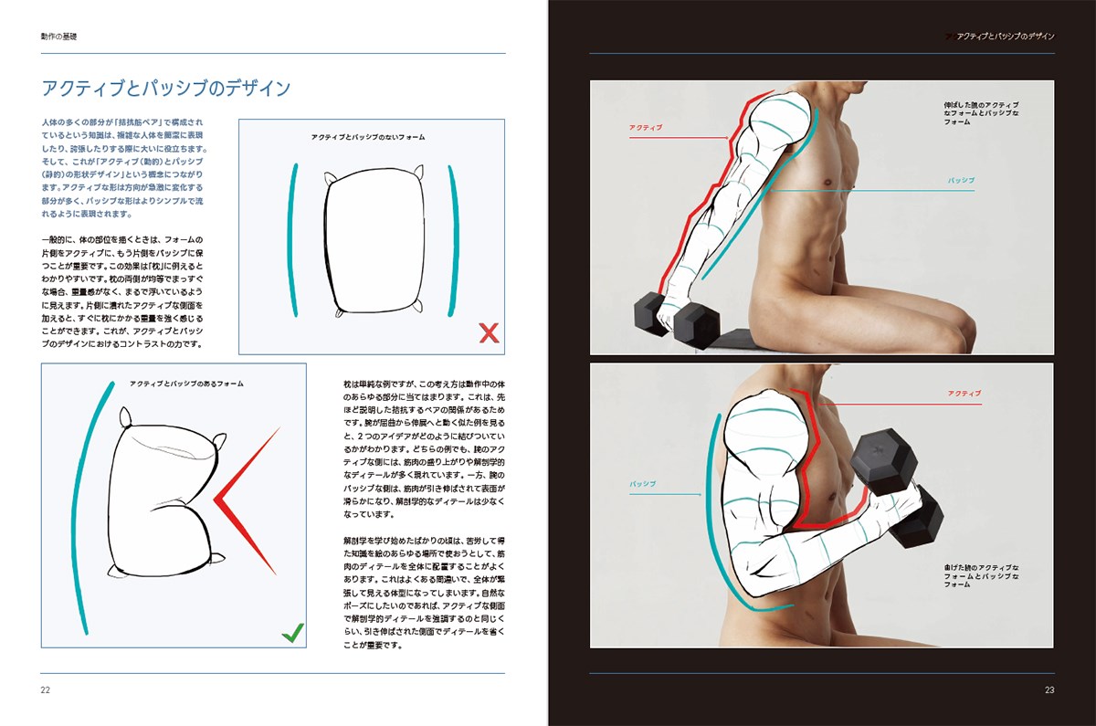 本書は、詳細な写真 と それらに重ね描かれたイラスト(筋肉図、平面図、輪郭図)で構成された「動作する人体」のビジュアルリファレンスガイド。歩行やジャンプ、そして、格闘からダンスまで、幅広いアクションを行うプロのモデルの姿を捉え、さまざまな体型の輪郭、平面、筋骨格を示している。伝統的な彫刻家、油絵画家、イラストレーター、CG、デジタル アーティストのいずれであっても、アートの質と精度を向上させるのに役立つ一冊となっている。