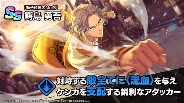 Aiming<3911>は、『WIND BREAKER 不良たちの英雄譚』(略称、『ウィンヒロ』)において、[獅子頭連のNo.3]鰐島 勇吾が登場することを発表した。