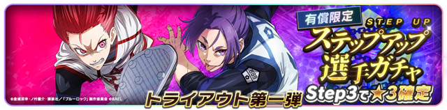 『有償限定トライアウト選手ステップアップガチャ』とは、ガチャを引くことでSTEPが1段階上昇していく限定ガチャ。それぞれSTEP1からSTEP5までの5段階が存在し、STEPに応じて獲得できる特典が変化する。トライアウト選手ステップアップガチャには、有償BLダイヤのみ使用して利用できる。詳細はゲーム内のお知らせで確認できる。