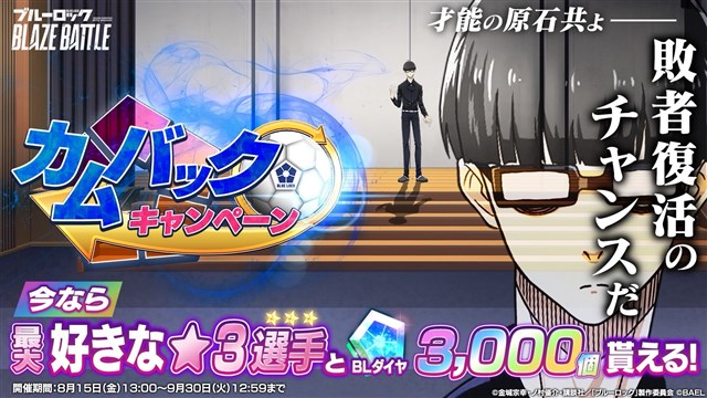 BAELは、『ブルーロック BLAZE BATTLE』(以下『ブレバト』)が9月1日に1.5周年を迎えることを記念し、8月15日より「1.5周年カウントダウン9大キャンペーン」を開催することを発表した。