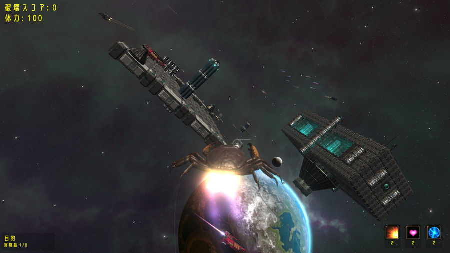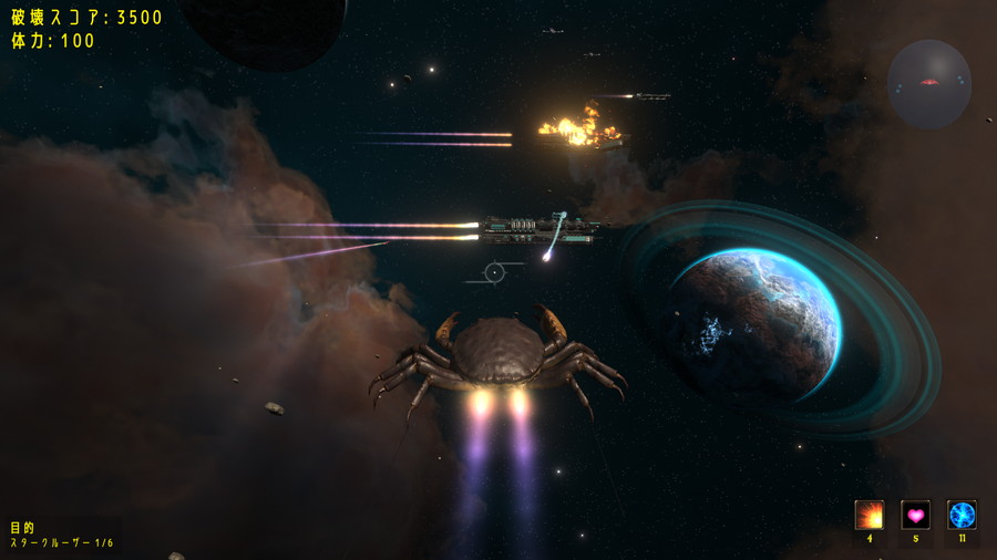 ◆宇宙を飛ぶ巨大ガニ!広大な宇宙空間で敵艦を撃て