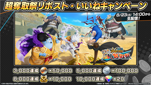 バンダイナムコエンターテインメントは、『ONE PIECE バウンティラッシュ』において、8月23日に開催される日本一を決める大会「第3回超奪取祭」の全試合をYouTubeでライブ配信することを発表した。