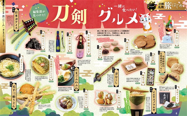 巻頭特集「一 刀剣乱舞 旅はじめ」では旅先で使える、刀剣乱舞ONLINEの機能のおさらいから、旅先で出会える刀剣男士インデックス、編集部が見つけた刀剣グルメ・刀剣アイテム、さらに刀剣鑑賞のいろはまで一挙掲載。刀剣旅へのワクワク感が一気に高まる。