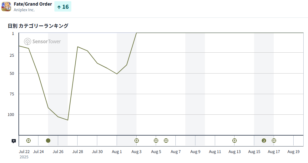 【App Store(8/20)】『FGO』18日連続の首位達成 闇の大魔王ゾーマ登場『DQタクト』と[降霊]伏黒甚爾追加の『ファンパレ』急上昇