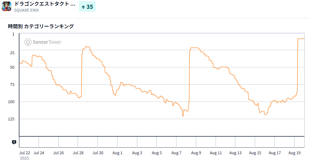| 9 | 93 | ↑84 | ドラゴンクエストタクト | スクウェア・エニックス<9684>/Aiming<3911> |