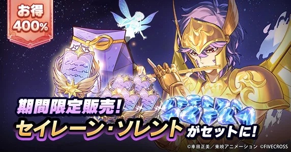 ファイブクロスは、スマホRPGゲーム『聖闘士星矢 Galaxy Soldiers』(聖闘士星矢GSS)において、「セイレーン・ソレント」が登場する期間限定イベントを開始した。