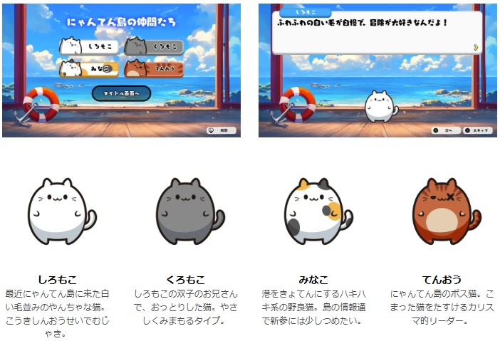 『ぷにゃんたち』モードでは、4匹の自己紹介を見ることができる。