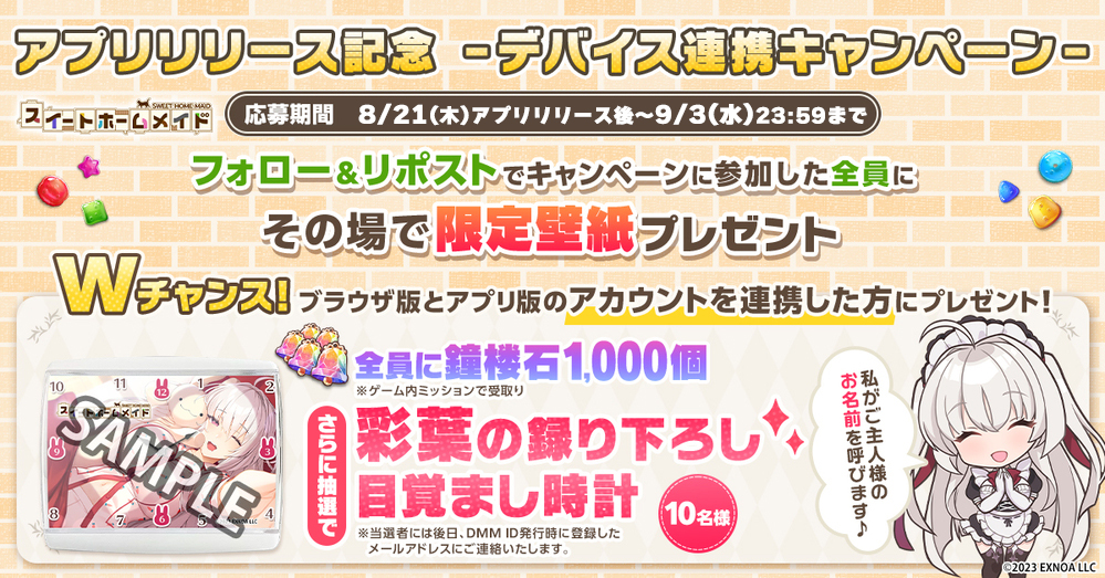 EXNOA、アプリ版『スイートホームメイド』の正式リリースを開始…オリジナルグッズやAmazonギフトカード番号がその場で当たるCP開催