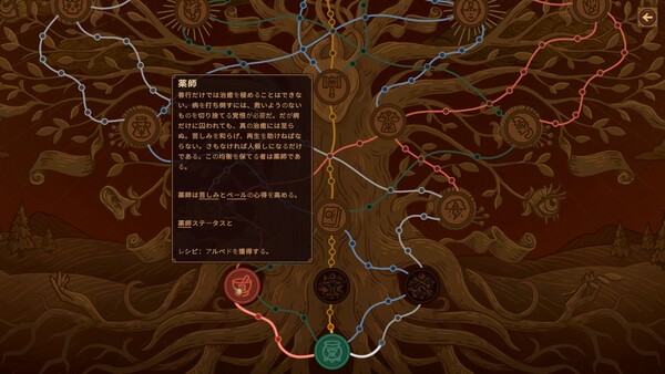 光のドルイド、神秘なる調香師、死を操るネクロマンサー、禁断の変化を追求する者たちなど、15種類のサブクラスが存在する。純粋な錬金術を極める道もあれば、死霊術や肉体改造といった禁忌に踏み込む道もある。すべての道には固有の下僕、レシピ、試練が待ち受け、選択によって異なる結末が導かれる。賢者の石で不死を得る道、真理の扉の先へと至る道など、13通りのエンディングが用意されている。