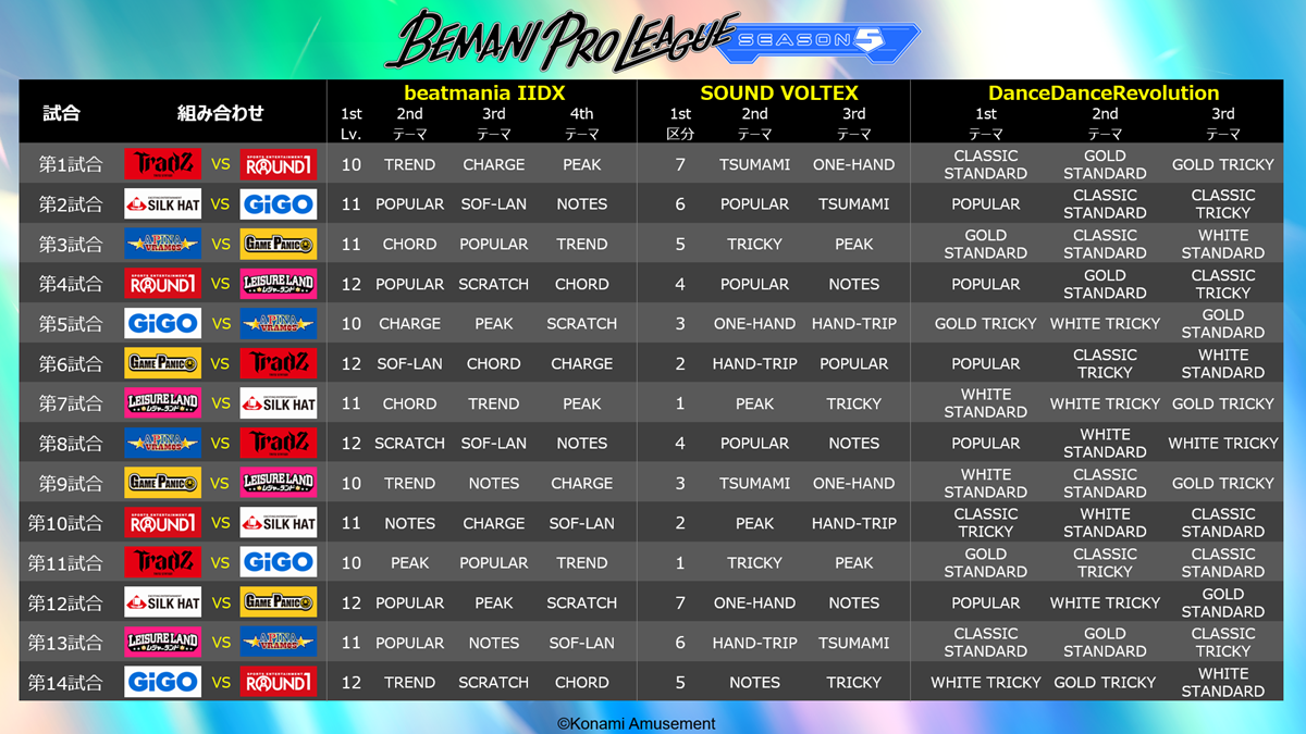 『BEMANI PRO LEAGUE -SEASON 5-』の3タイトルそれぞれの7チームに所属する選手が選出された。総勢84名の選手たちの活躍に期待しよう。