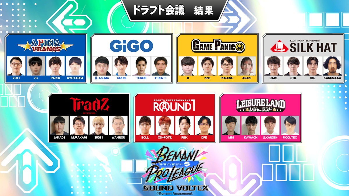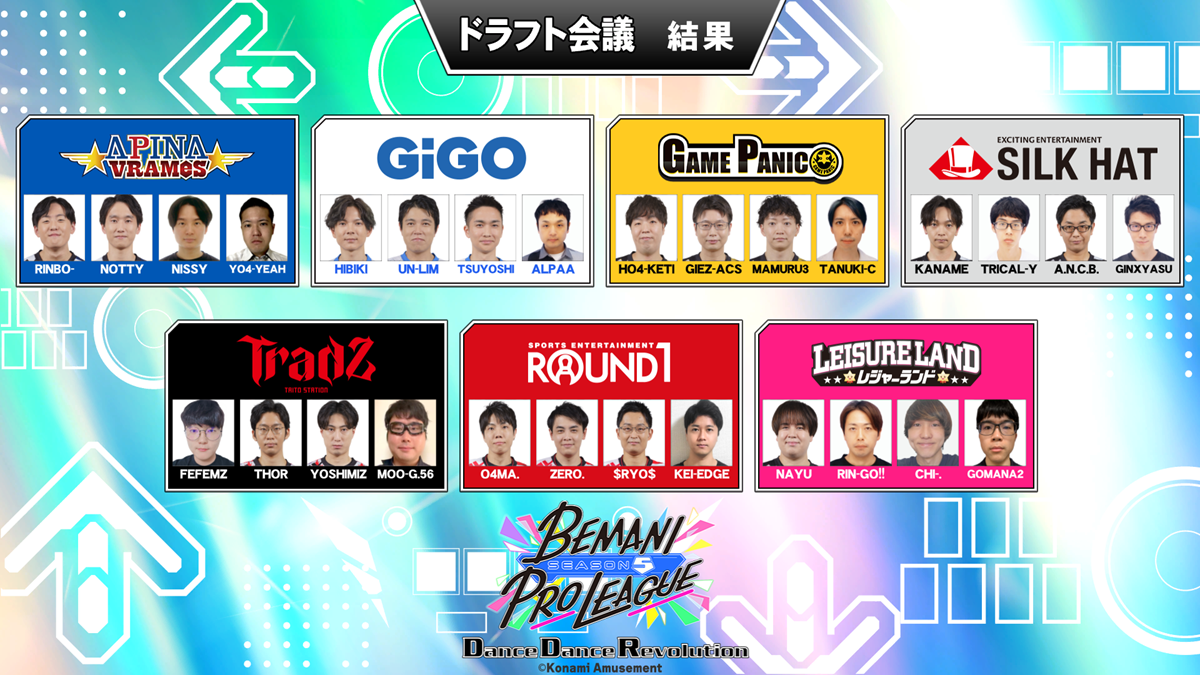 ▼『BEMANI PRO LEAGUE -SEASON 5-』ドラフト会議詳細