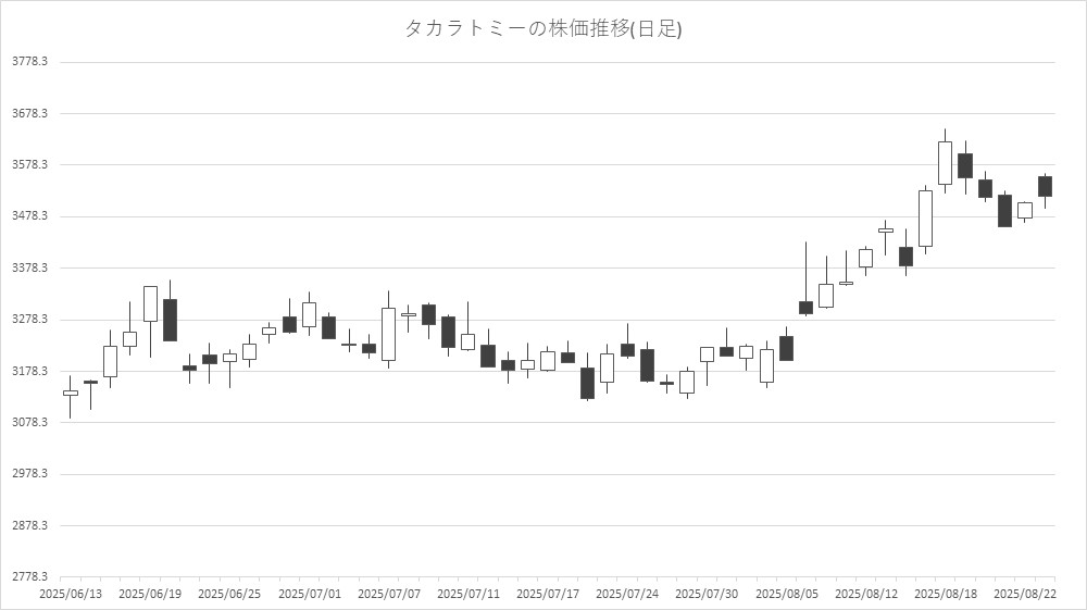 アニメやホビーなどその他コンテンツ関連銘柄は、タカラトミー<7867>、フリュー<6238>、ブシロード<7803>が高く、サンリオ<8136>、東宝<9602>、KADOKAWA<9468>、IGポート<3791>、GENDA<9166>、東映アニメ<4816>、エディア<3935>が安い。