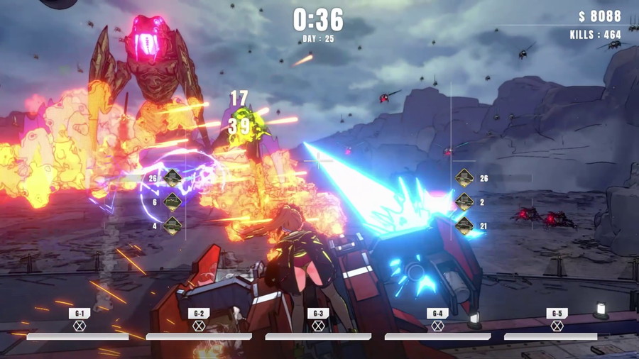本作は、外来生物の大群から地球を守るため、新兵としてタレットに乗り込み戦うスピーディーなレールタレット防衛シューティングゲーム。