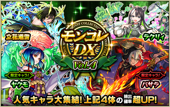 MIXI<2121>は、『モンスターストライク』において、8月26日(火)12:00より、ガチャ「モンコレDX」を開催する。