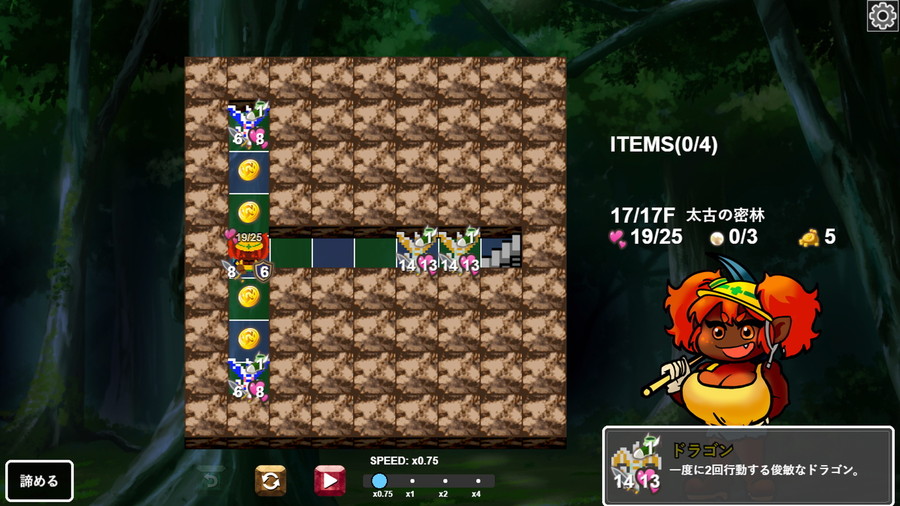 本作は、ダンジョンの形を組み替えながら攻略するパズル的試行錯誤と、アイテムを駆使して敵を倒すローグライクの要素が特徴のパズル+ローグライクゲーム。何度でもやり直しが可能で、ウェブ版から追加された「罠」や「お店」といった戦略的なギミックも楽しめる。