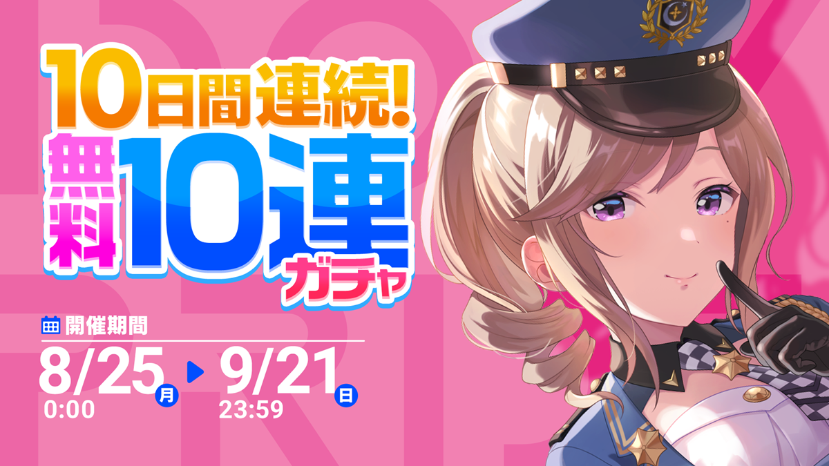 「初音ミク」とのコラボ第3弾を記念して、ゲーム内にて最大100連のガチャを無料で引くことができる「10日間連続!無料10連ガチャ」を開催。期間中、10連ガチャを1日1回、最大で10日間引くことが可能だ。