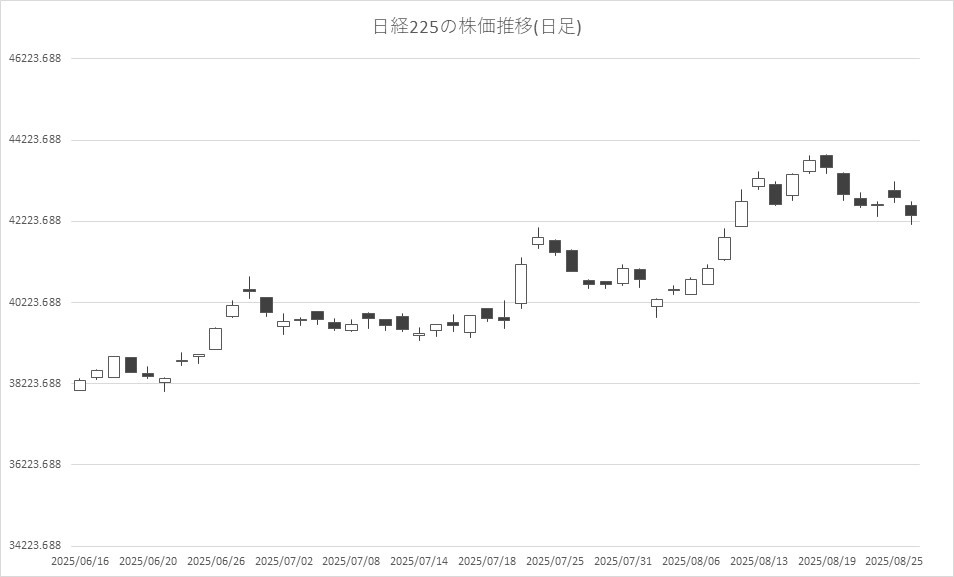 8月26日前場の東京株式市場は反落。日経平均株価は、前営業日比453円29銭安の4万2354円53銭で午前中の取引を終えた。一時670円20銭安の4万2137円62銭まで売られる場面があった。前日の米国株式市場が下落した流れを引き継いだ。トランプ米大統領がFRBのクック理事解任を発表したことで、米国の金利低下とともに円高に振れたことも嫌気された。明日8月27日にエヌビディアの決算発表を控えており、様子見ムードも強いという。