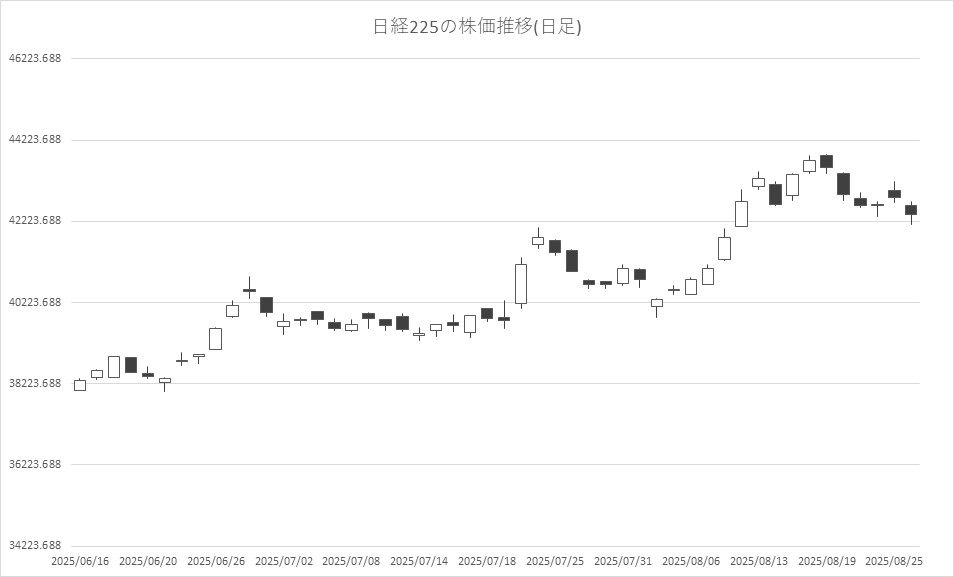 8月26日の東京株式市場は反落。日経平均株価は、前営業日比413円42銭安の4万2394円40銭でこの日の取引を終えた。トランプ米大統領の米国連邦公開市場委員会(FRB)の人事を巡る発言を受けての円高進行や前日の米国株安を嫌気して売り優勢だったが、売り一巡後は買い戻しが入り、もみ合いに終止した。エヌビディアの決算発表が控えていることもあり、様子見ムードが広がったという。
