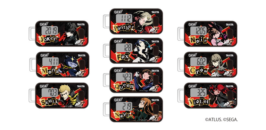 3Dセンサー搭載で、首から下げたり、バッグやポケットに入れた状態でも正確に歩数をカウントできる。P5Rで追加したヴァイオレットを含む、怪盗団メンバー10人の怪盗服姿とコードネームをデザイン。黒と赤のコントラストが効いたデザインで、ゲームの世界観を反映している。全10種類をラインナップ。