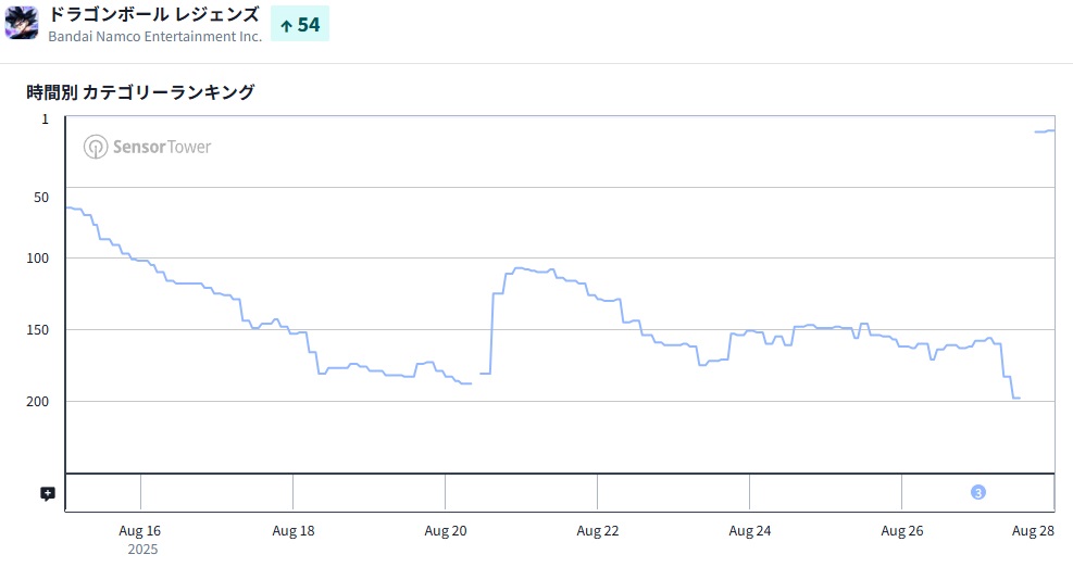 | 11 | 158 | ↑147 | ドラゴンボール レジェンズ | バンダイナムコエンターテインメント<7832> |