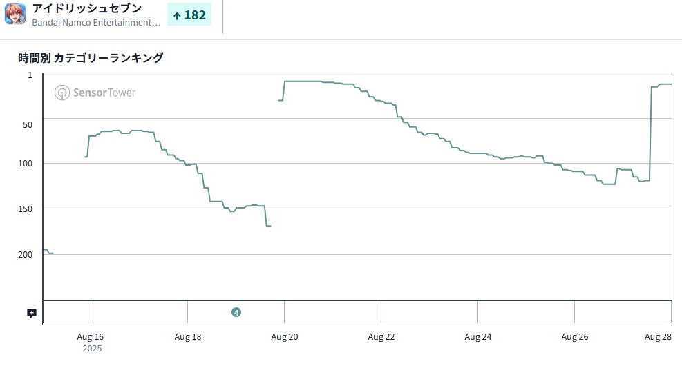 | 13 | 107 | ↑94 | アイドリッシュセブン | バンダイナムコエンターテインメント<7832> |
