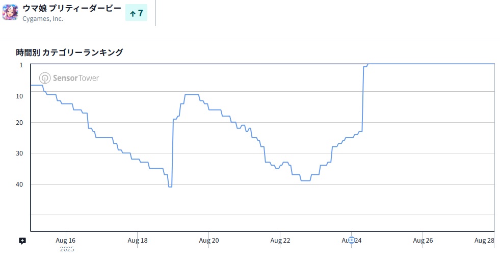 8月28日9時35分現在のApp Storeセールスランキングは、Cygames『