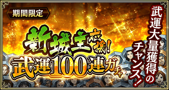 人気武将が獲得できる3つの新城主応援!武将ガチャを開催!