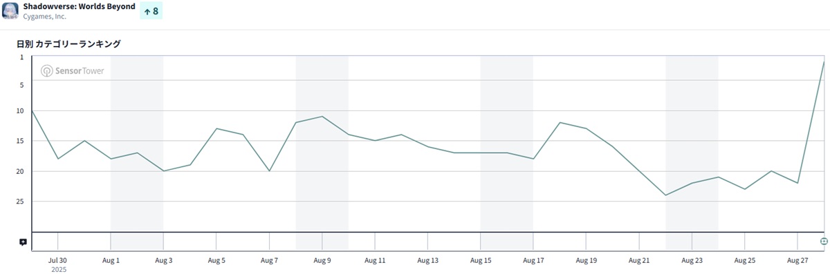 | 2 | 22 | ↑20 | Shadowverse: Worlds Beyond | Cygames<4751> |