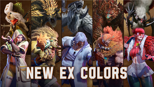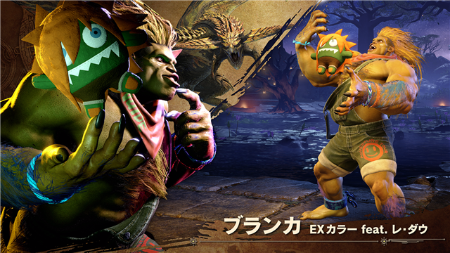 コラボを記念して『モンスターハンターワイルズ』に登場するモンスターたちをイメージした、「ブランカ」「豪鬼」「マノン」「キャミィ」「ケン」計5種のEXカラーをゲーム内ショップで販売予定。