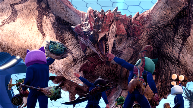 さらに、バトルハブが『モンスターハンターワイルズ』専用の内装に変化する。フォトスポットには「リオレウス」「リオレイア」が登場するので、コラボ衣装でハンターになりきって記念撮影したり、世界中のライバルと対戦したりと、バトルハブを存分に楽しもう!