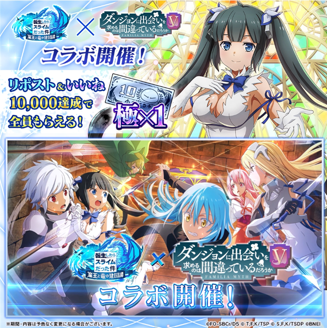 バンダイナムコENT、『転生したらスライムだった件 魔王と竜の建国譚』×「ダンジョンに出会いを求めるのは間違っているだろうか」を本日よりコラボ開始!