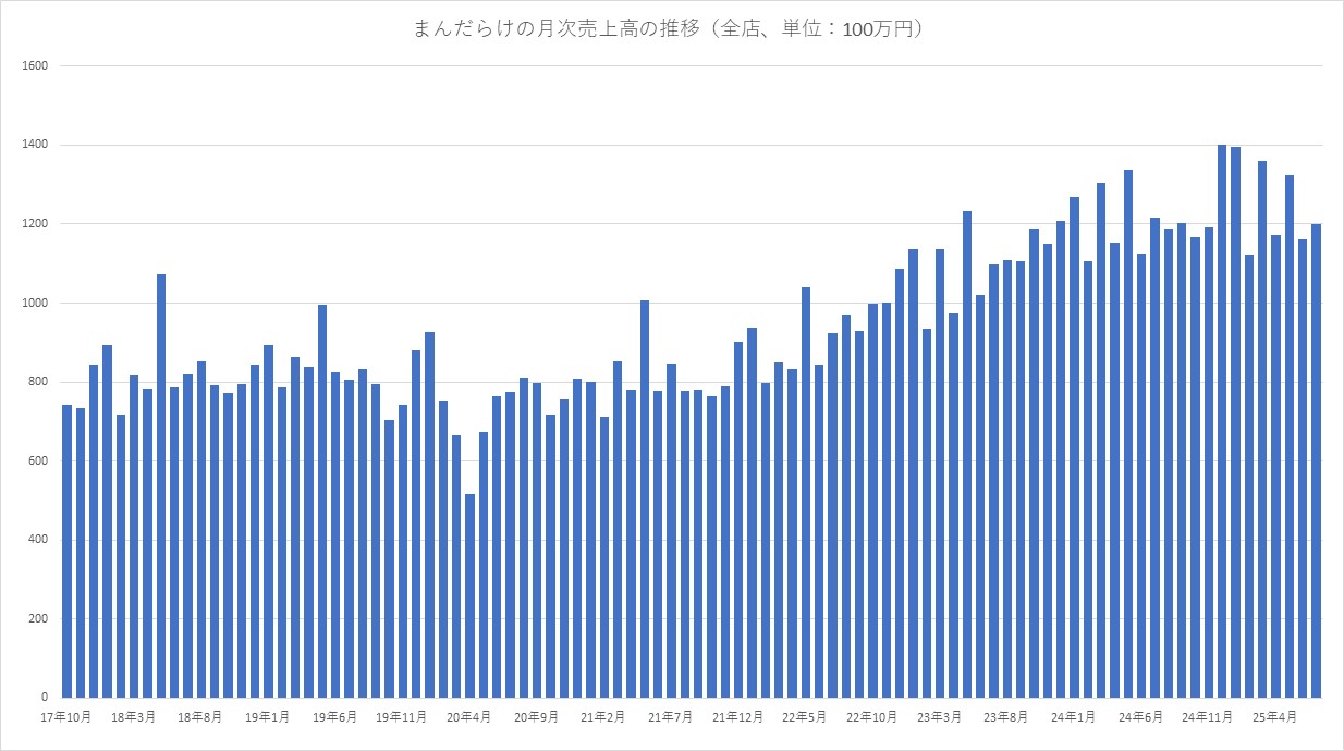 また、2024年10月から2025年7月までの累計売上高は、全店が3.6%増の125億0400万円、既存店が同3.5%増の123億7600万円だった。
