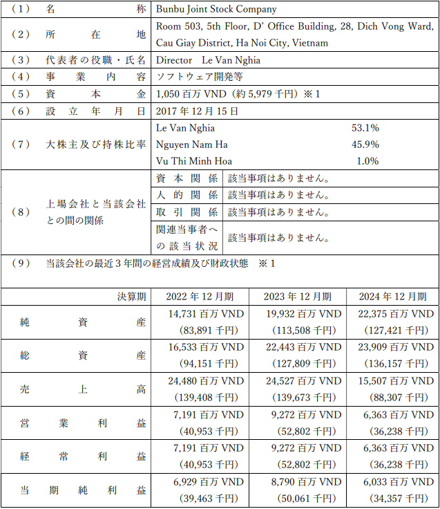 同社は、「VISION2030」でデジタル人材と事業の成長を重視しており、中期成長戦略として同領域企業のM&Aを掲げている。Bunbu社は、日本の技術力に触発されたギア社長が創業し、ベトナムの優秀なエンジニアと日本のエンジニアの協働で開発力を確立した企業。
