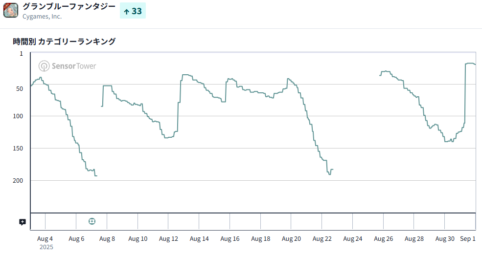 | 30 | 70 | ↑40 | 妖怪ウォッチ ぷにぷに | レベルファイブ/NHN PlayArt |