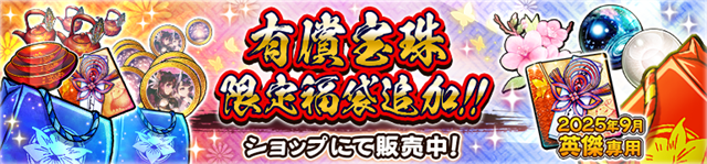 当月に開催されるガチャ「【願い焦がれしあの唄を】&【調伏戦】特効! 英傑 縁結び」で使用できる「【御朱印付き】9月・英傑結糸(10回)」を1個と、「二つ名」の強化に必要なアイテムがまとめて手に入るお得なセット。この福袋は合計4つ購入することができ、福袋1つあたり、キャラクターの「二つ名」の「スロット」1つをLv99まで育成できる量の「誉の験」が手に入る。
